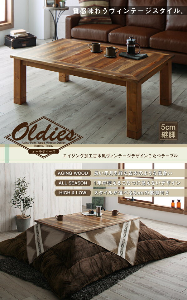 商品名 エイジング加工古木風ヴィンテージデザインこたつテーブル Oldies オールディーズ 4尺長方形(80×120cm) 配送について こちらの商品はメーカーより直送致します。